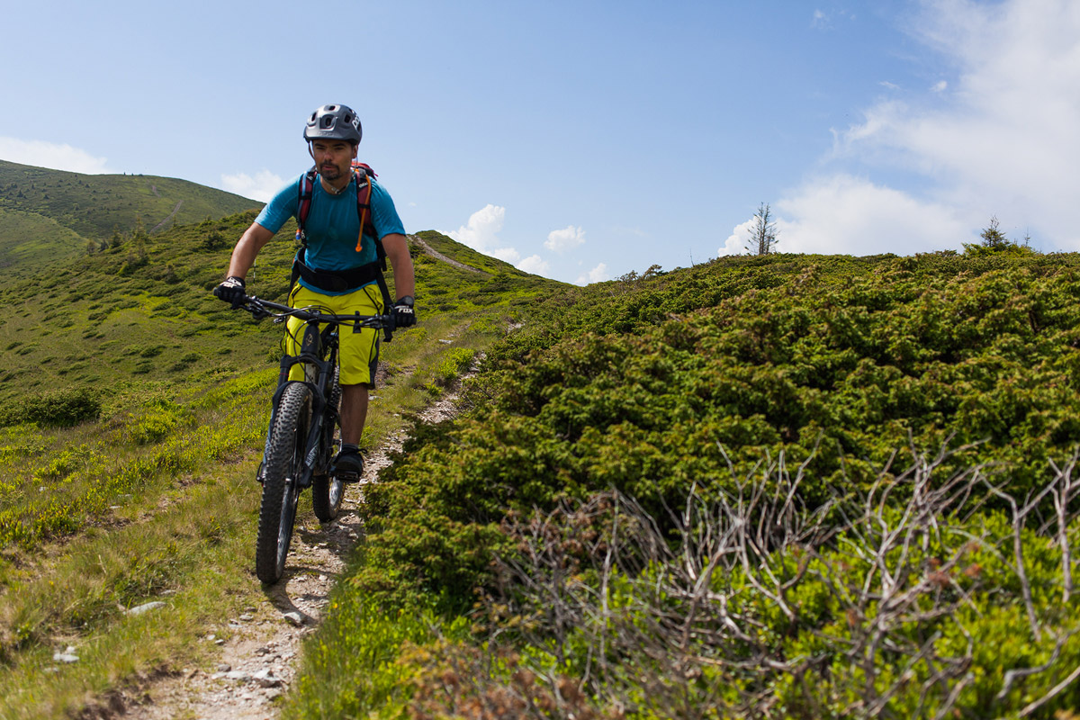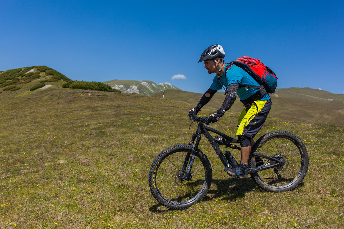 Munții Bucegi sînt de departe cei mai potriviți munți înalți din România pentru mountain biking. Cu un vast platou la plus-minus 2000 de metri plin de cărări, cu un vârf de 2507m (Omu) perfect accesibil cu bicicleta, cu ceva opțiuni de transport pe cablu dar și acces pe drum auto, Parcul Natural Bucegi oferă suficiente opțiuni atât pentru cross-countriști, cât și pentru euduro/freerideri.